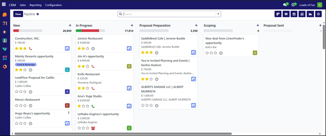 This screen provides a visual view of all sales opportunities as they move through each stage of the sales process. It helps to track progress, prioritize deals, and quickly understand where each opportunity stands.